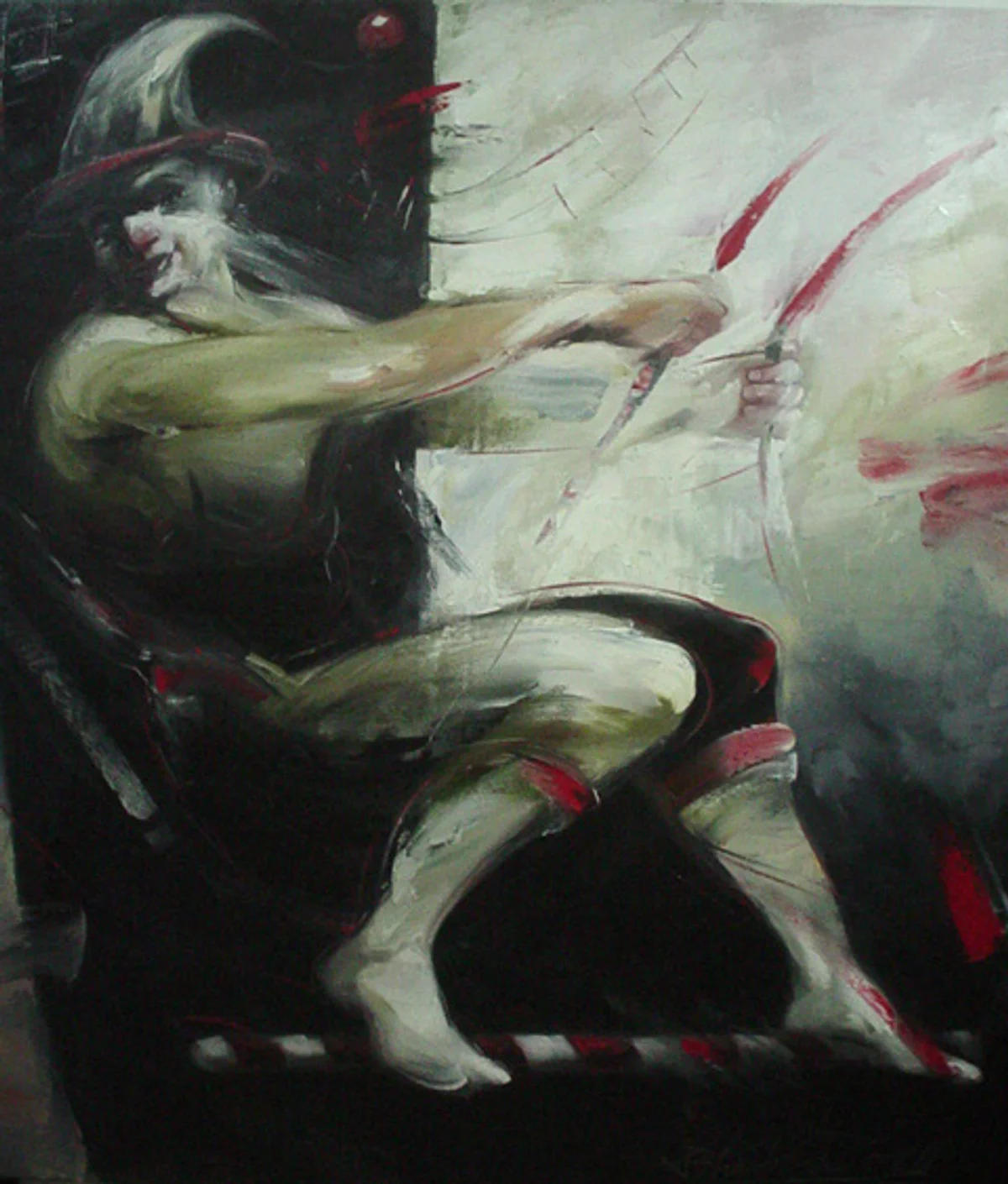 Arguably one of the more enigmatic figures in the Indian art scene, Ganesh Pyne has created his own universe. He was born on June 11, 1937 in Kolkata, West Bengal. One gets the distinct feeling that he is not interested in the immediate moment or the everyday reality that surrounds him. He has often said that he sees a parallel world unfolding itself, “In my mind’s eye, I see things in my own way. I carry my own world within me. And often this world runs parallel to the world of reality in which I live. My inner world is rooted in my childhood. It has been nourished by my childhood associations.” An air of sadness envelops him. One wonders at the deep sense of loss that makes him talk so wistfully. Pyne never forgets the evanescence of life and the knowledge that death is ever-present. Feeling blue is a way of life with him and it is understandable when one gets to know his childhood and youth. He seemed to have had more than the ordinary share of traumas in his childhood.